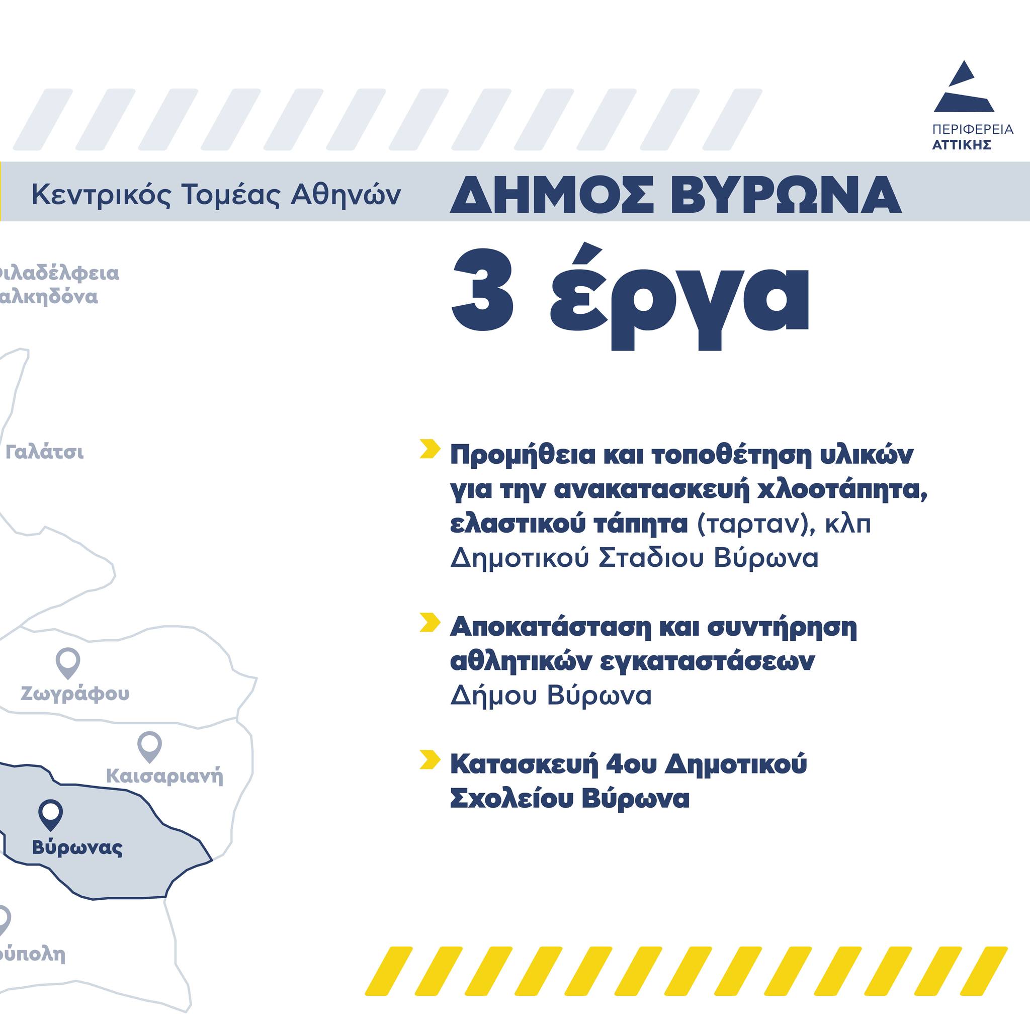 Η Περιφέρεια Αττικής συνεχίζει με σταθερό ρυθμό την επένδυση σε κρίσιμες υποδομές που αναβαθμίζουν την ποιότητα ζωής των πολιτών. Στον Δήμο Βύρωνα, τρία σημαντικά έργα βρίσκονται ήδη σε φάση υλοποίησης, ανταποκρινόμενα στις ανάγκες των κατοίκων της περιοχής: