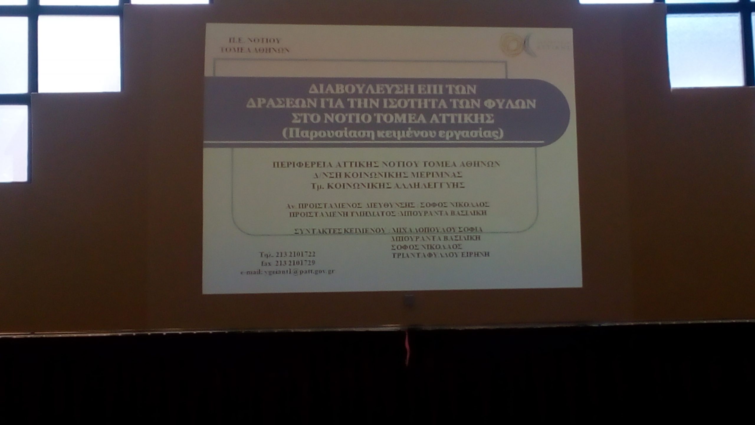 Πραγματοποιήθηκε η διαδικασία διαβούλευσης με θέμα τις δράσεις για την ισότητα των φύλων στην Περιφερειακή Ενότητα Νότιου Τομέα Αθηνών.
