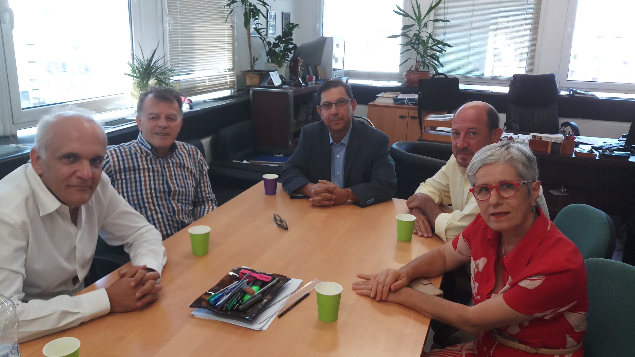 Στο πλαίσιο της ενημέρωσης και της συνεργασίας, ο Αντιπεριφερειάρχης Χρήστος Καπάταης, συνοδευόμενος από την Περιφερειακή Σύμβουλο, Ελισάβετ Τασούλη και τον κ. ΄Αρη Κρεμμύδα, επισκέφτηκε τα γραφεία της Πρωτοβάθμιας και Δευτεροβάθμιας Εκπαίδευσης Νοτίου Τομέα Αθηνών, όπου συναντήθηκε με τον Δ/ντη της Δ΄ Διεύθυνσης Πρωτοβάθμιας Εκπαίδευσης, κ. Γεώργιο Κέντρο και με τον Δ/ντη της Δ΄ Διεύθυνσης Δευτεροβάθμιας Εκπαίδευσης, κ. ΄Αρη Βαρελά.