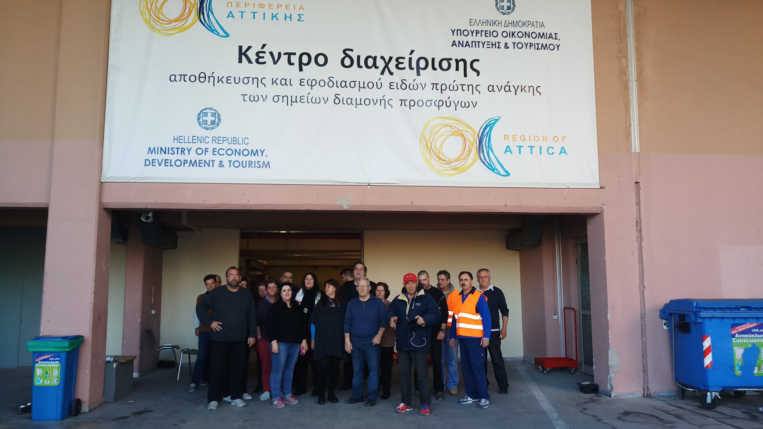 Ομάδα μελών της <<Αλληλεγγύης για όλους>>, προσφέρει τις υπηρεσίες της στο Κέντρο Διαχείρισης, Αποθήκευσης και Εφοδιασμού Ειδών Πρώτης Ανάγκης των σημείων διαμονής προσφύγων, βοηθώντας στην ταχύτερη διαλογή και αποστολή υλικών σε συμπολίτες μας που το έχουν ανάγκη.